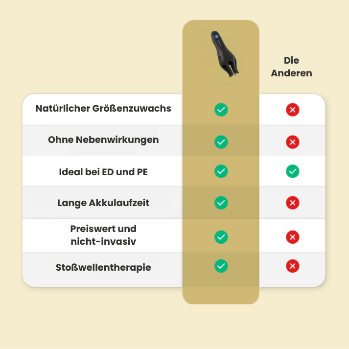 Im Gegensatz zu Pillen, die Nebenwirkungen haben können, oder Pumpen, die oft unangenehm sind, bietet PulsMann einen natürlichen, sicheren und effektiven Ansatz, um die männliche Leistungsfähigkeit dauerhaft zu verbessern.